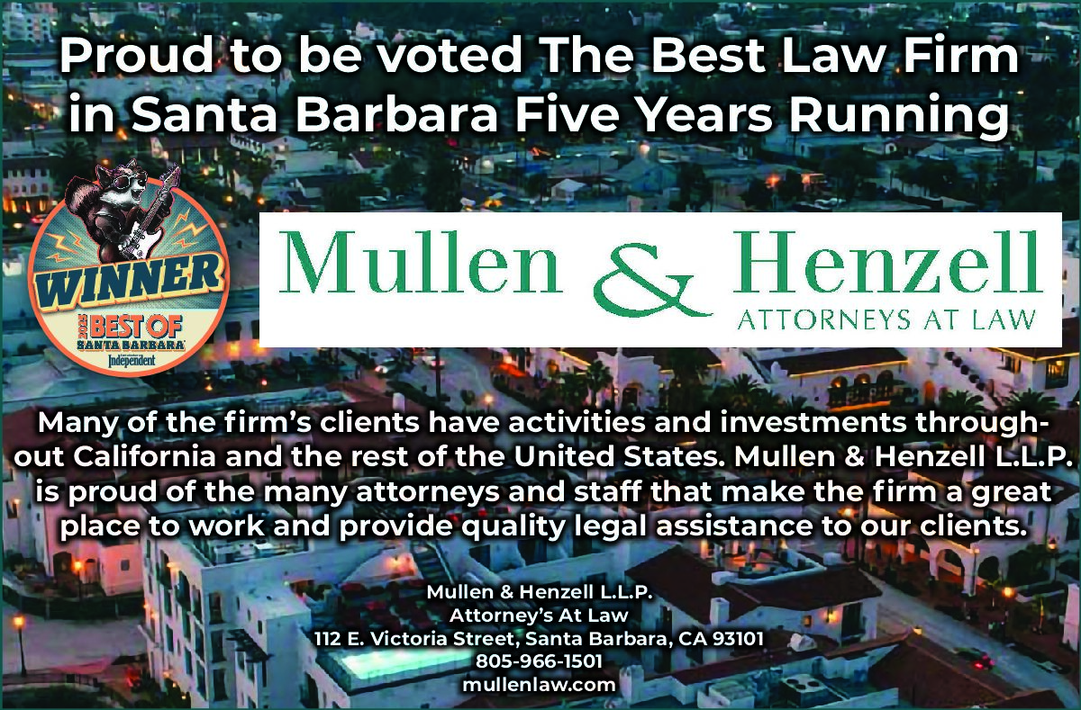 Mullen & Henzell L.L.P. is honored to once again be voted Best Law Firm in the Santa Barbara Independent’s “Best Of” Readers’ Poll for the fifth year in a row!...